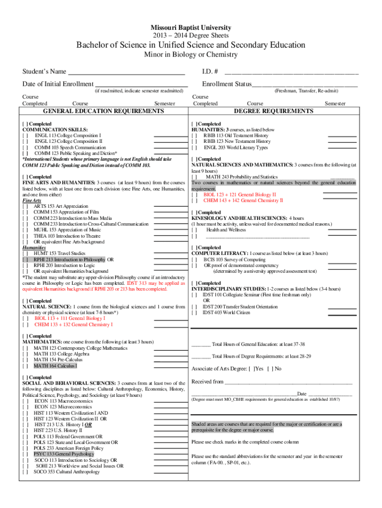 2013 2014 Degree SheetsBachelor of Science in Unified Science and Secondary Education