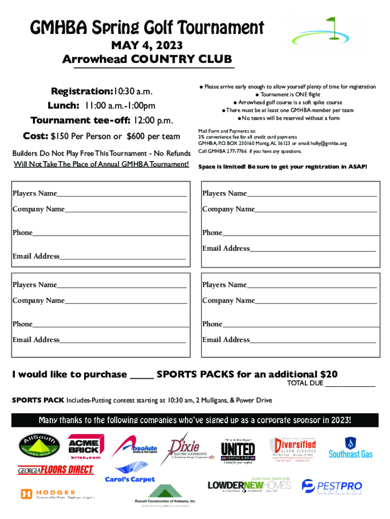 All GMHBA members and partners are required to participate in the GMHBA Spring Golf Tournament.
