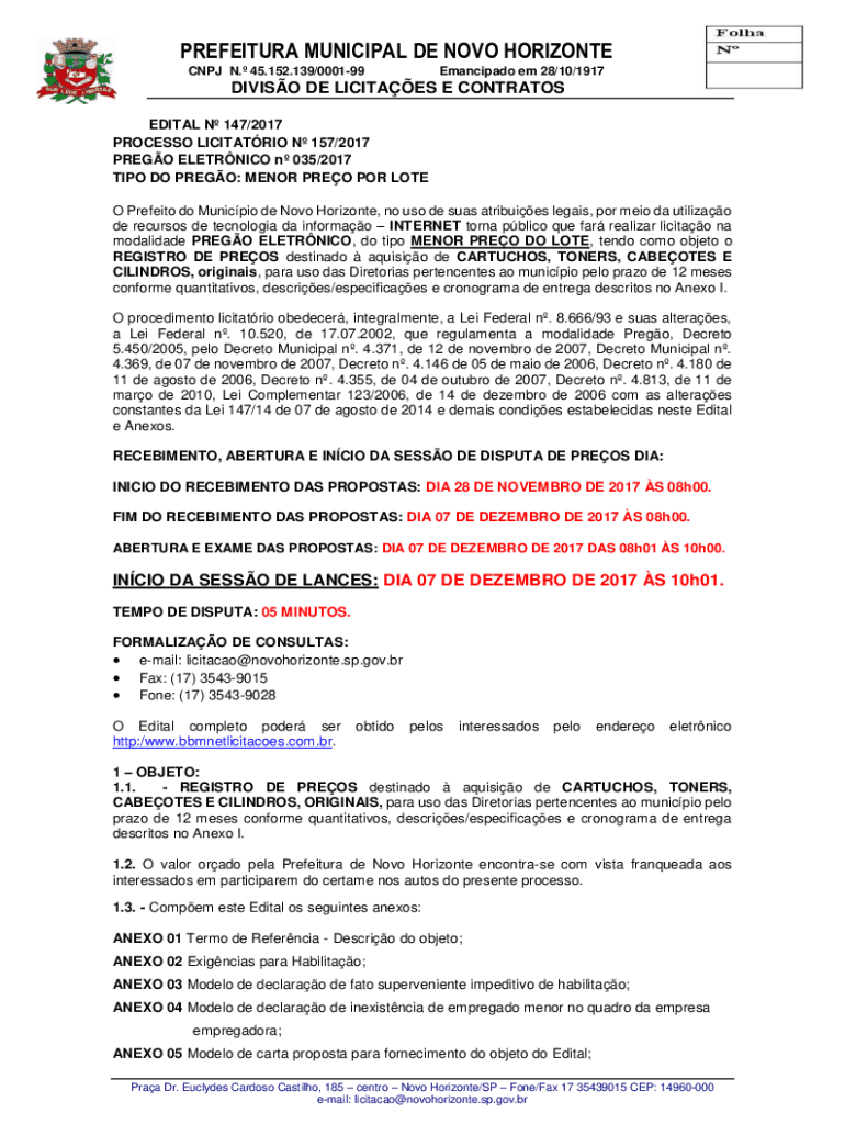 Obtenha o gratuito O Prefeito do Municpio de Novo Horizonte, no uso de suas atribuies legais, por...