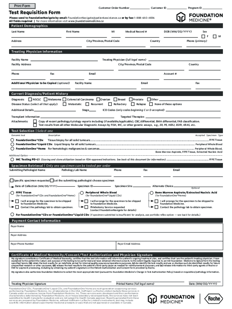 Print FormCustomer Order Numberless Requisition FormCustomer Program ID. Please send to FoundationNavigate by email: FoundationNavigate@patientassistance.ca or by fax: 18886504836