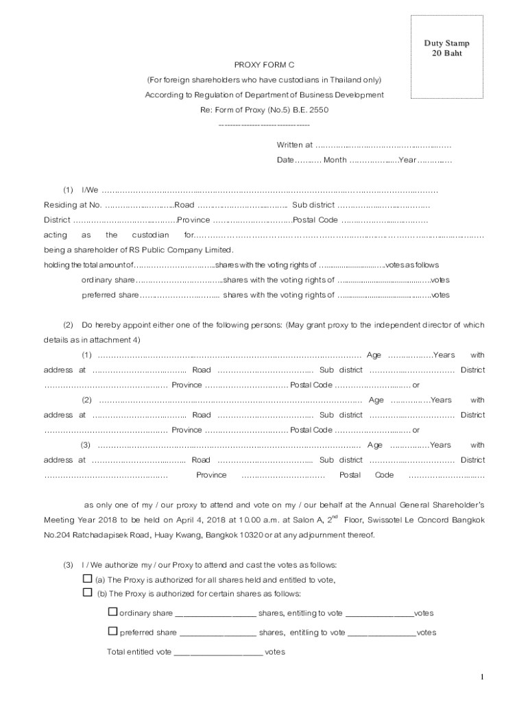 D u t y S t a mp 2 0 B HAProxy FORM C (For foreign shareholders who have custodians in Thailand only) According to Regulation of Department of Business Development Re: Form of Proxy (No.5) B.E. 2550