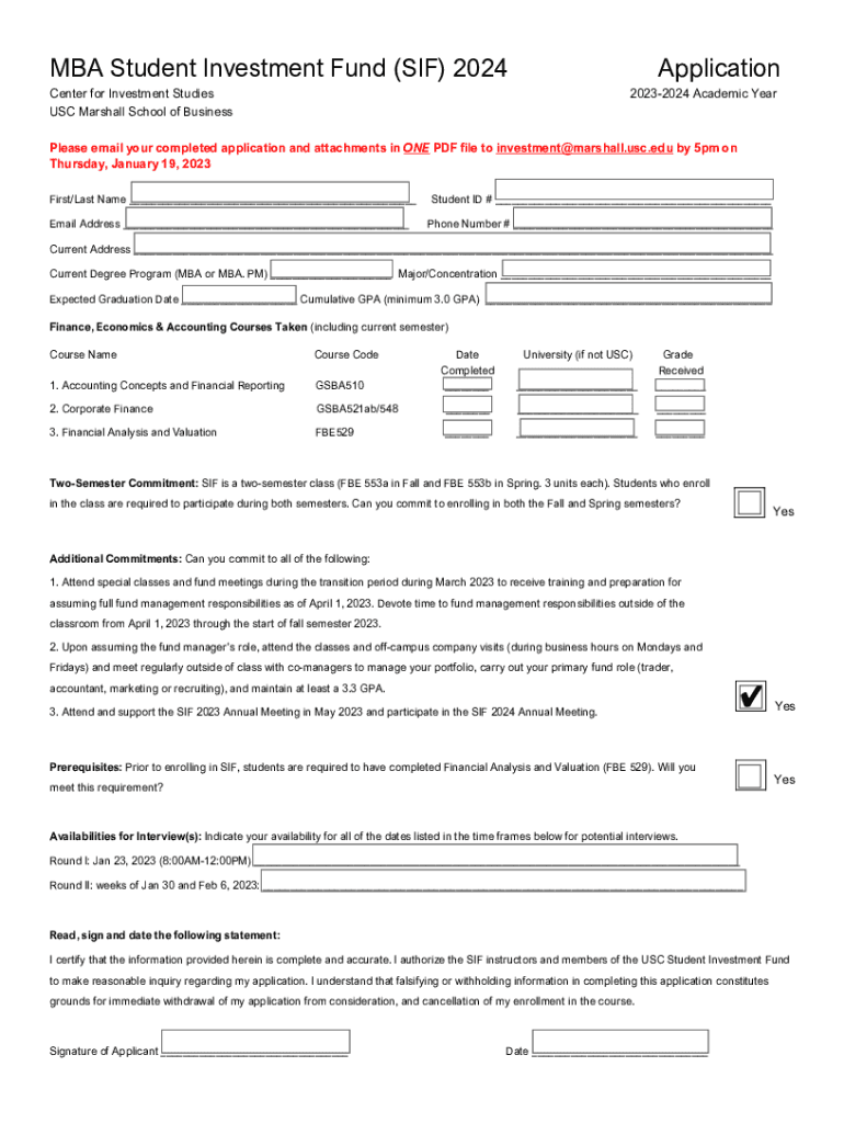 USC Marshall School of Business20232024 Academic Release email your completed application and attachments in ONE PDF file