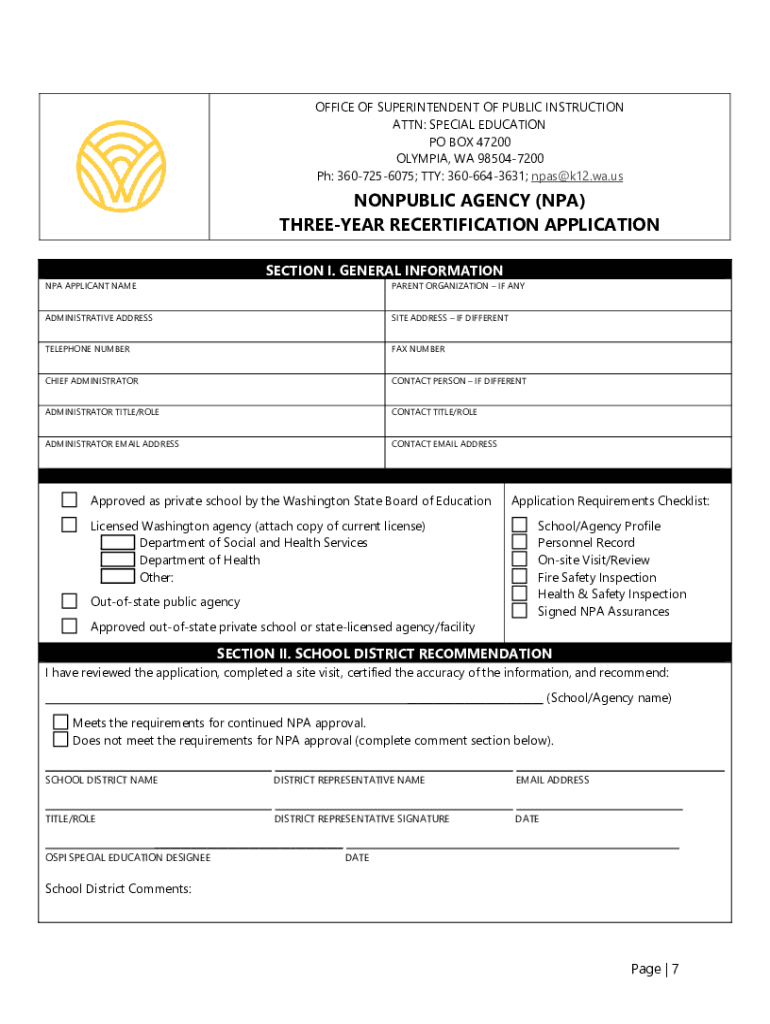 Get the free Nonpublic Agency (NPA) Three-Year Recertification Application. Nonpublic Agency (NPA...