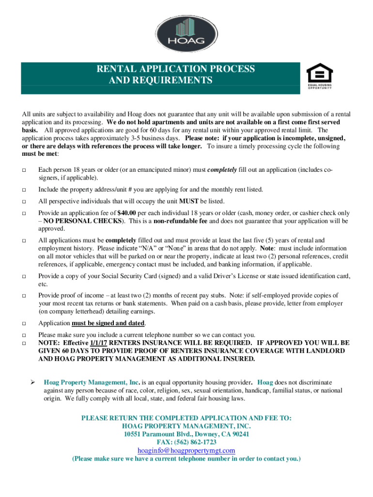 RENTAL APPLICATION PROCESS AND Requirements units are subject to availability and Hoax does not guarantee that any unit will be available upon submission of a rental application and its processing.