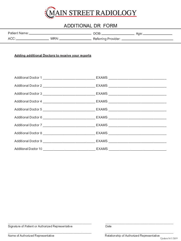 ADDITIONAL DR FORM Patient Name: ACC:DOB: MAN:Age:Referring Provider:Adding additional Doctors to receive your reportsAdditional Doctor 1 ___ EXAMS ___ Additional Doctor 2 ___ EXAMS ___ Additional