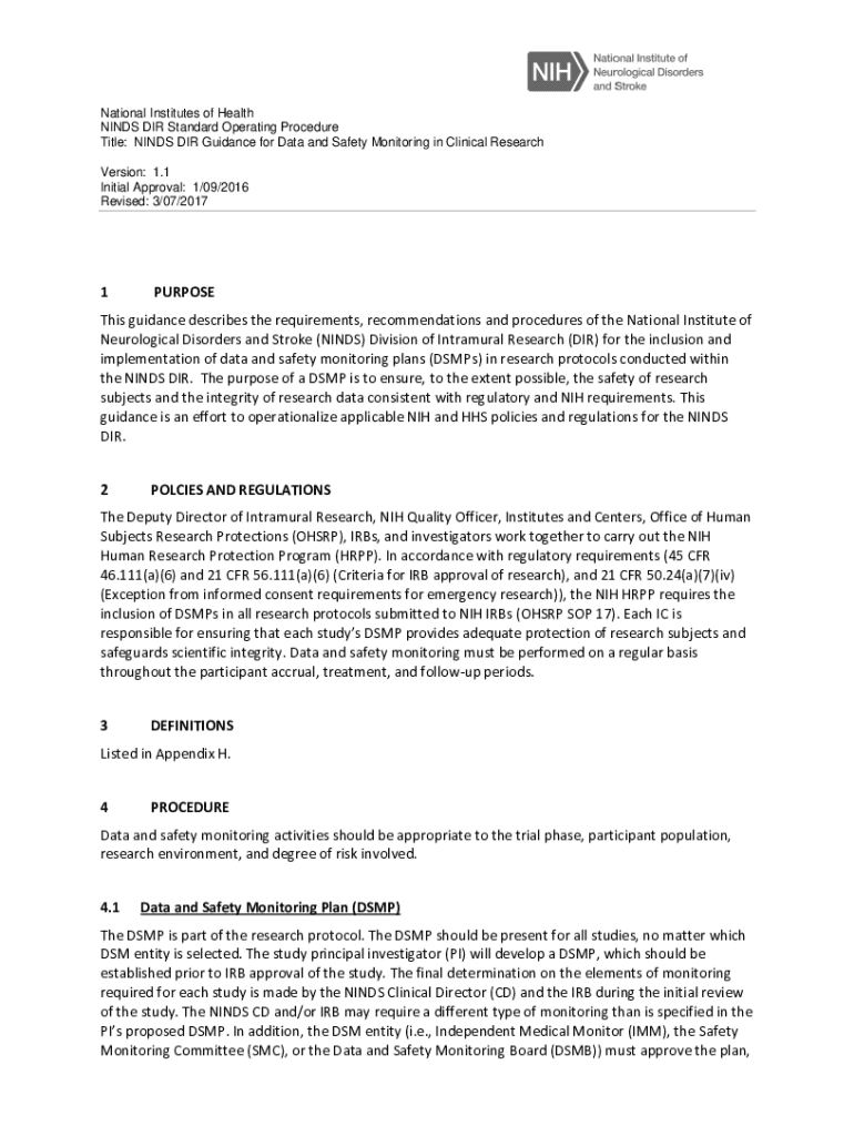 Get the free NINDS DIR Guidance for Data and Safety Monitoring in ...