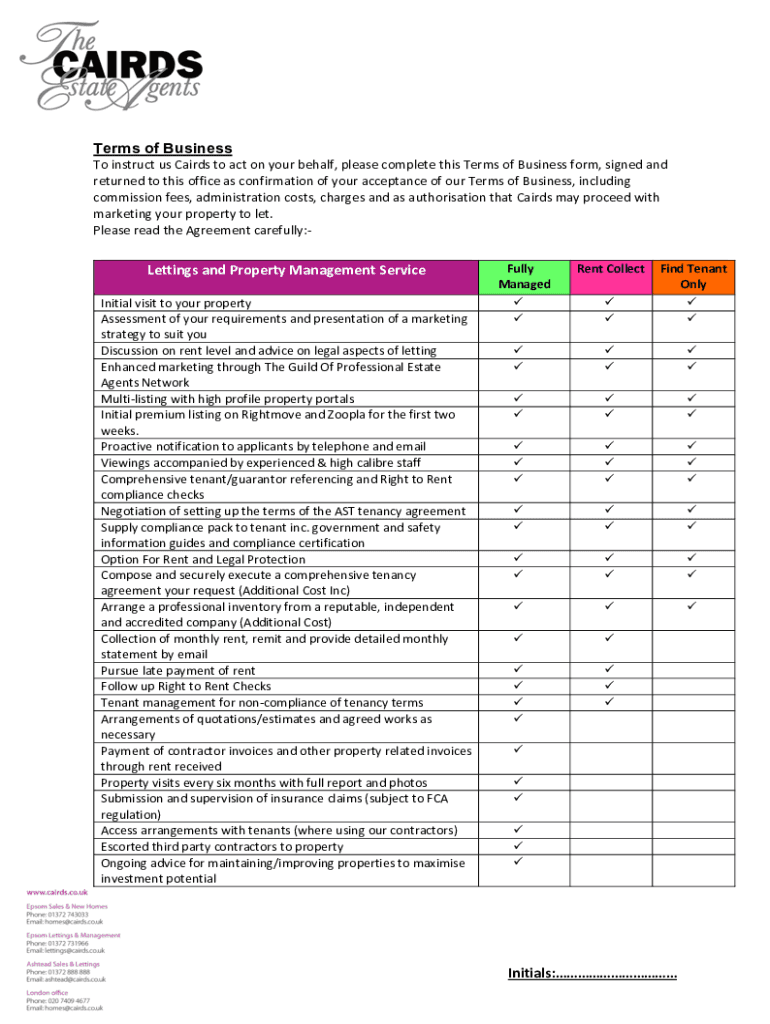 Terms of Business instruct us Cards to act on your behalf, please complete this Terms of Business form, signed and returned to this office as confirmation of your acceptance of our Terms of Business,