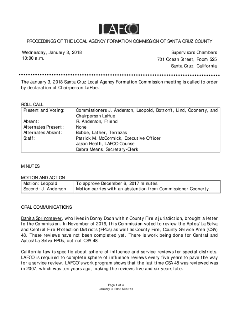 PROCEEDINGS OF THE LOCAL AGENCY FORMATION COMMISSION OF SANTA CRUZ COUNTY