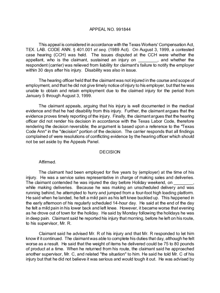 APPEAL NO. 991844 This appeal is considered in accordance with the Texas Workers\' Compensation Act, TEX. LAB. CODE ANN. \' 401.001 et seq. (1989 Act). On August 3, 1999, a contested case hearing