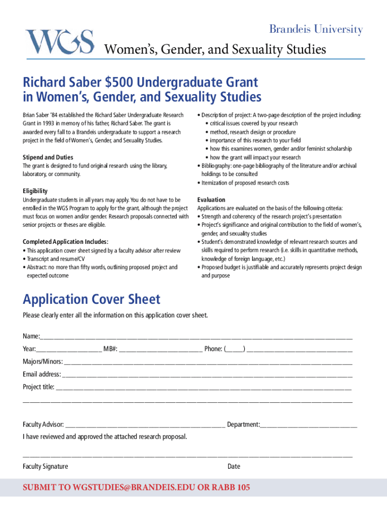 Brandeis UniversityWomens, Gender, and Sexuality Studies Richard Saber $500 Undergraduate Grant in Women's, Gender, and Sexuality Studies Brian Saber 84 established the Richard Saber Undergraduate