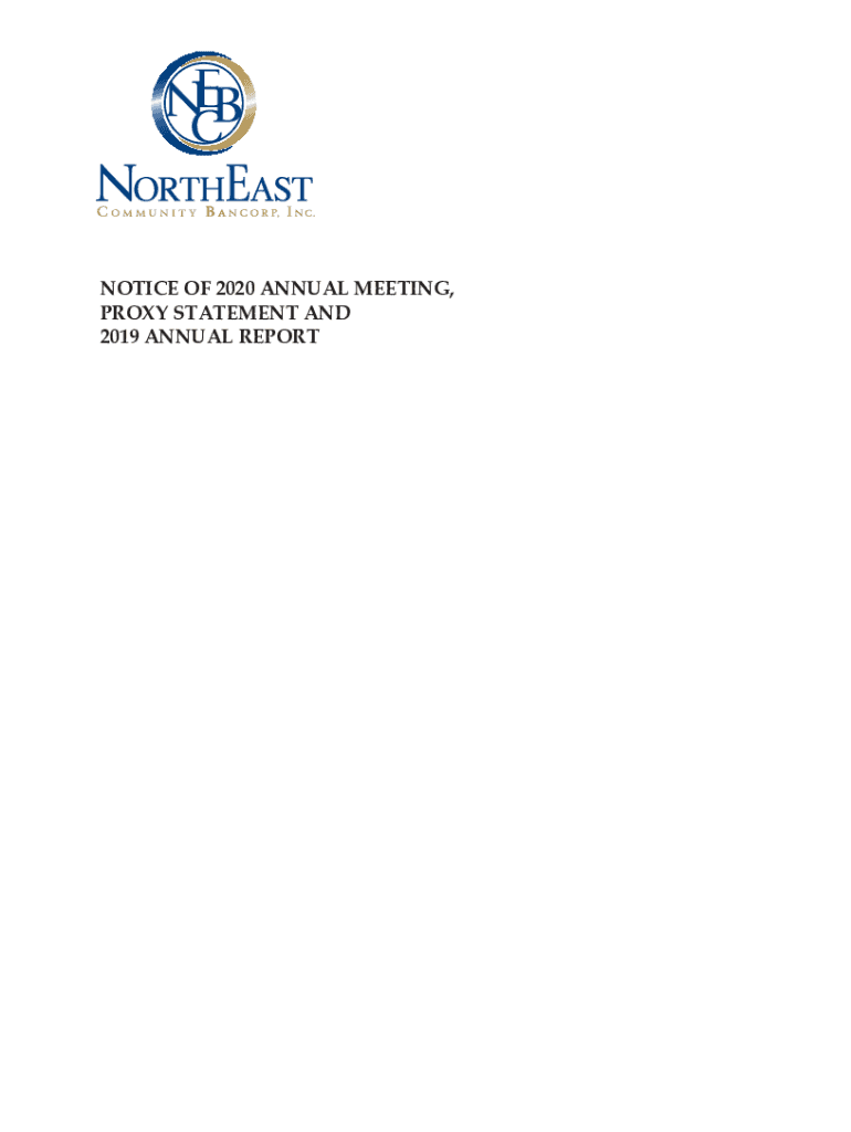 [LOGO]NOTICE OF 2020 ANNUAL MEETING, PROXY STATEMENT AND 2019 ANNUAL REPORTNORTHEAST COMMUNITY BANGOR, INC. Corporate Profile Northeast Community Ban corp, Inc., headquartered in White Plains, New