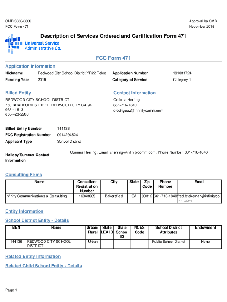 November 2015Description of Services Ordered and Certification Form 471FCC Form 471