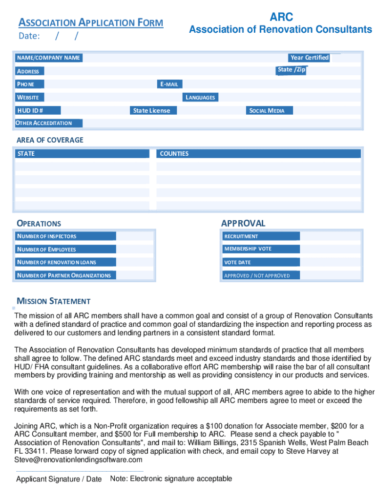 ARC application instructions typically require information such as company details, financial information, and compliance with ARC policies.