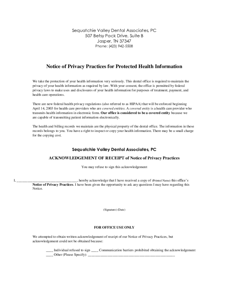 Phone: (423) 9425508Notice of Privacy Practices for Protected Health Information