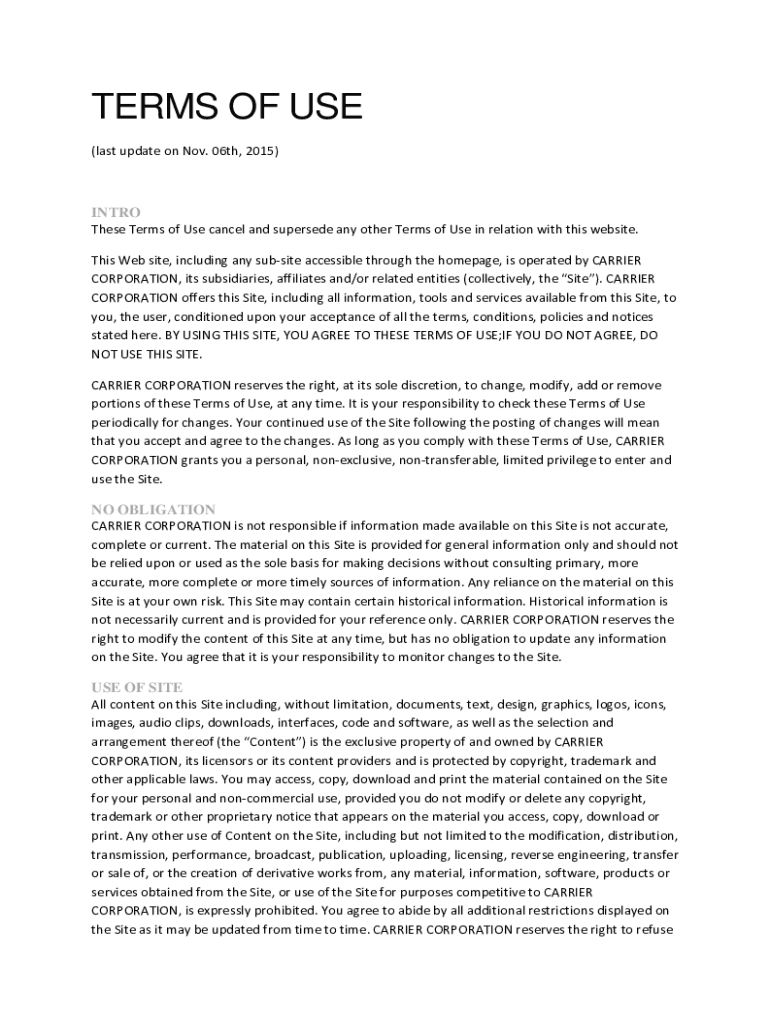 Get the free Terms Of UsePrivacy Policy CTE Eng - Carrier Corporation