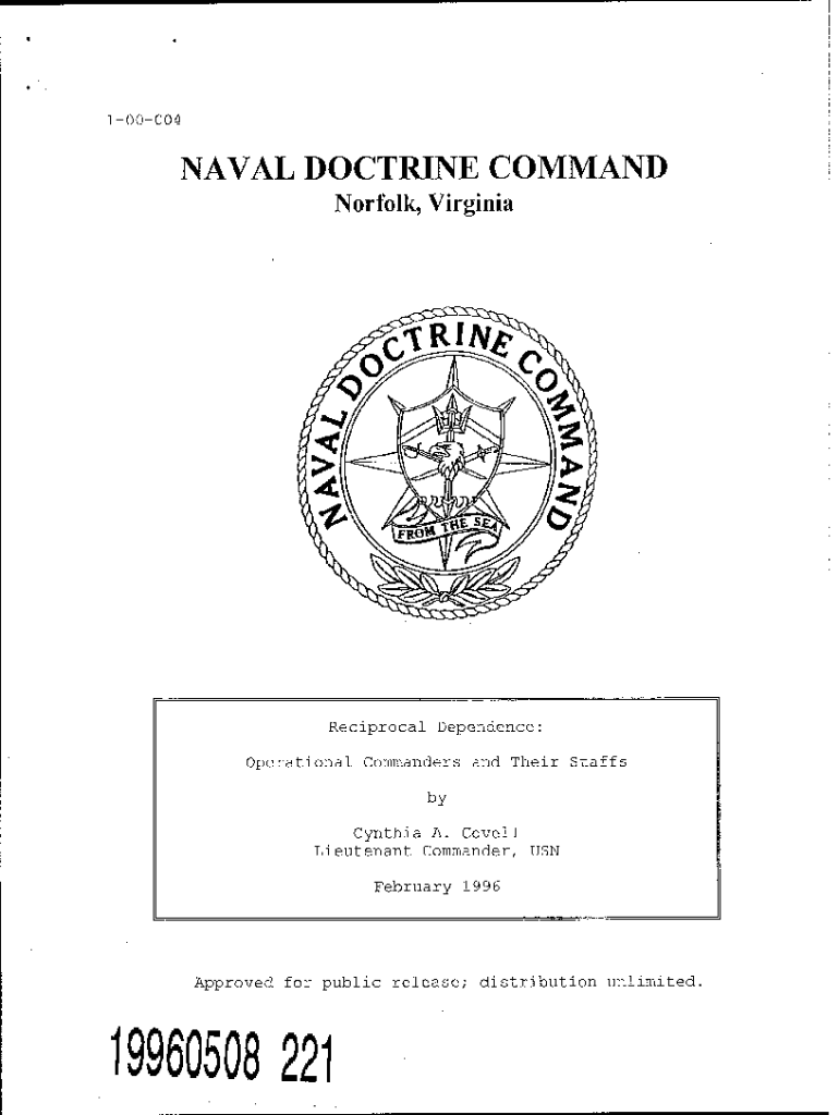 100004NAVAL DOCTRINE COMMAND Norfolk, VirginiaReciprocal Dependence: Operational Commanders and Their Staffs by Cynthia A. Cowell Lieutenant Commander, USN February 1996Approved for public release;
