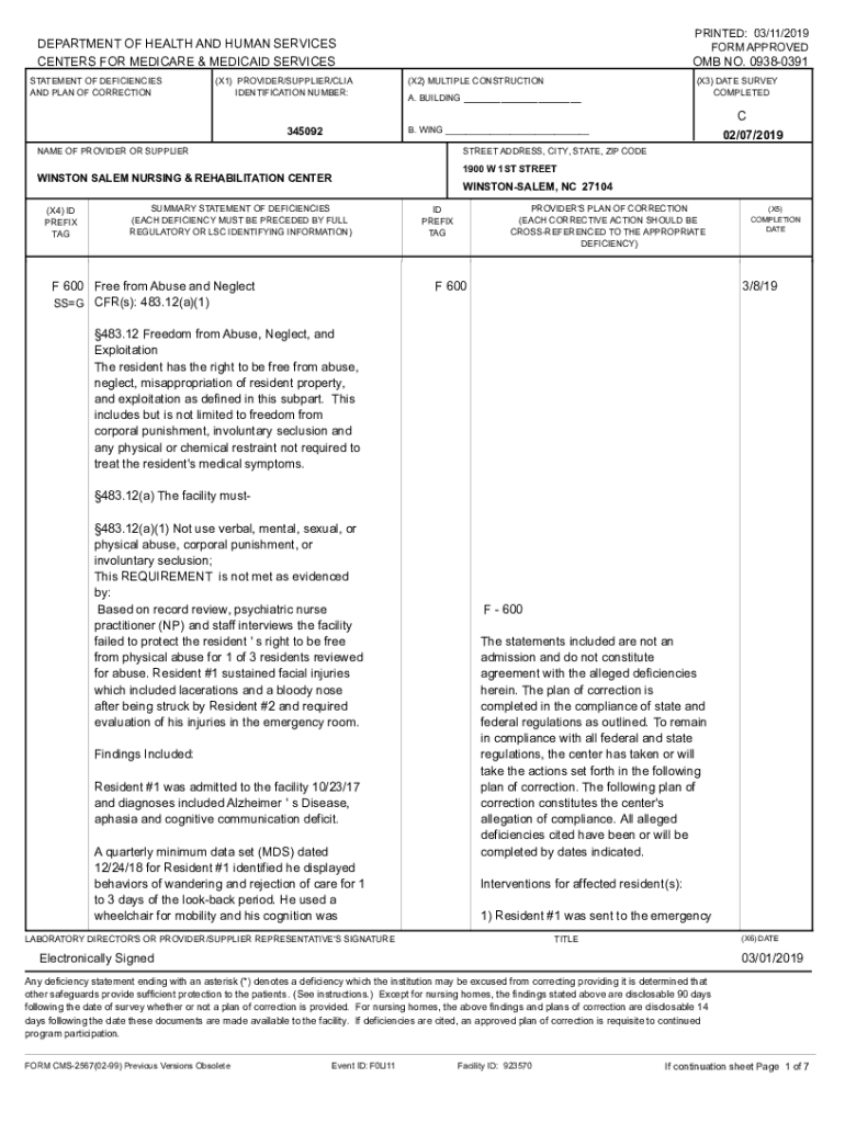 PRINTED: 03/11/2019 FORM APPROVEDDEPARTMENT OF HEALTH AND HUMAN SERVICES CENTERS FOR MEDICARE & MEDICAID SERVICES STATEMENT OF DEFICIENCIES AND PLAN OF CORRECTION(X1) PROVIDER/SUPPLIER/CIA IDENTIFICATION