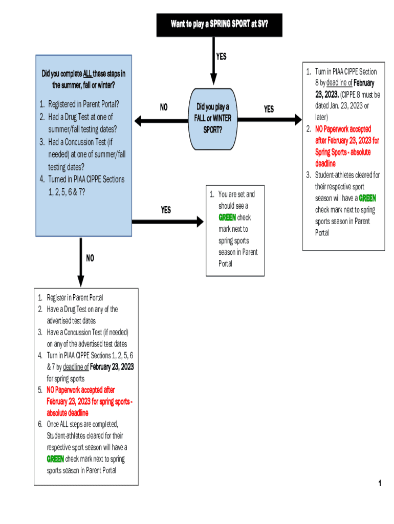 Want to play a SPRING SPORT at SV? YES Did you complete ALL these steps in the summer, fall or winter?1. Registered in Parent Portal? 2. Had a Drug Test at one of summer/fall testing dates? 3. Had