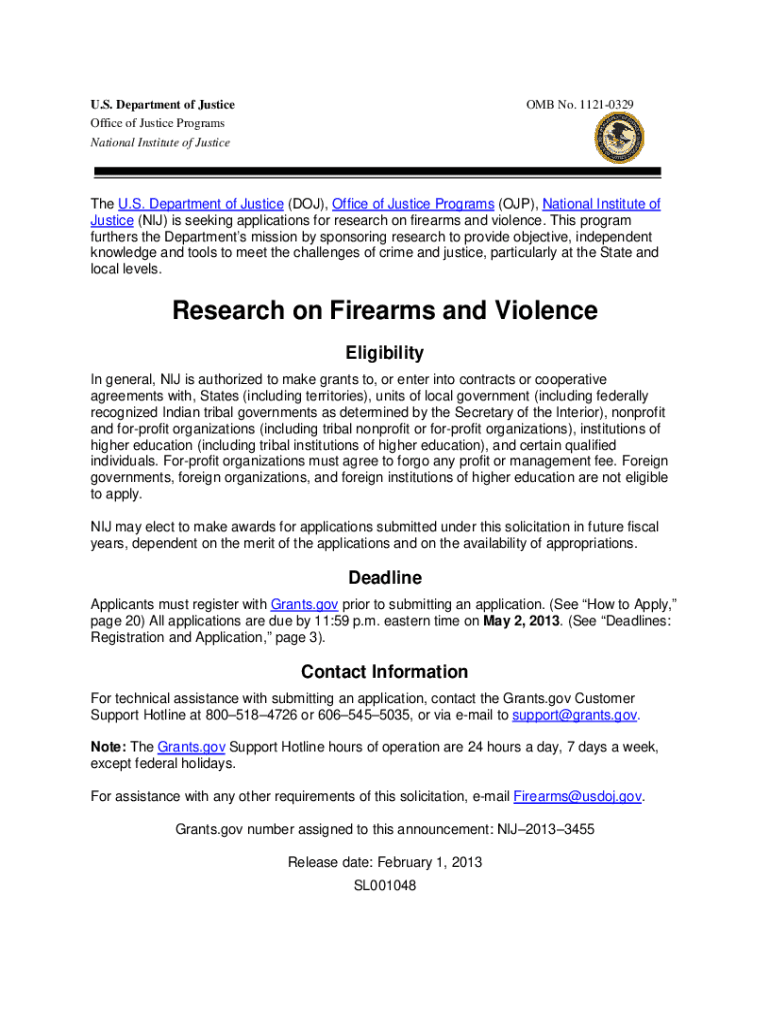 Get the free NIJ FY13 Research on Firearms and Violence. NIJ FY13 Research on Firearms and Violence