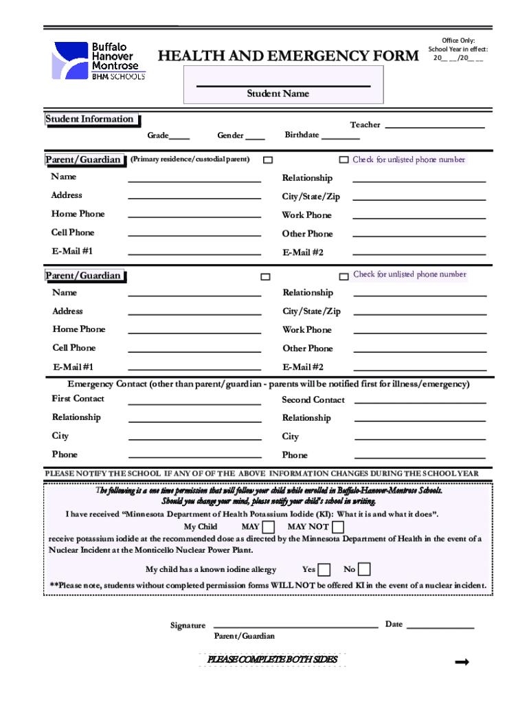 Grandparent/GuardianGenderBirthdate(Primary residence/custodial parent)TeacherCheck for