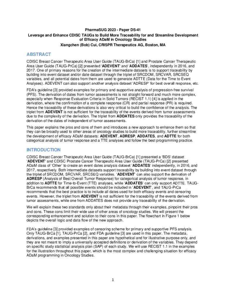 Get the free Leverage and Enhance CDISC TAUGs to Build More Traceability for and Streamline Devel...