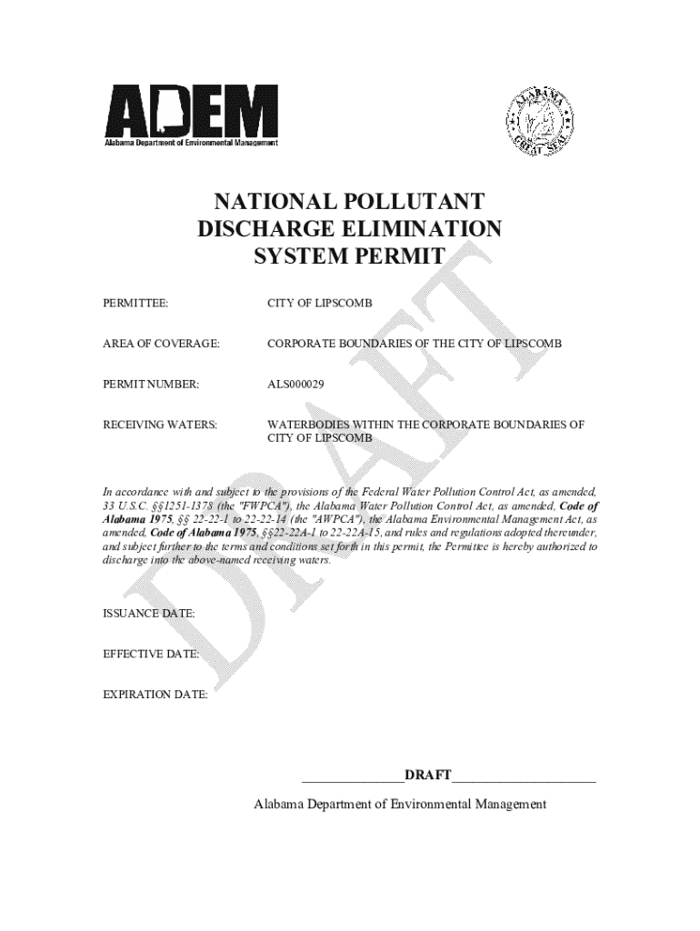 Get the free Notice of Intent (NOI) for Coverage under a National Pollutant ... - adem alabama