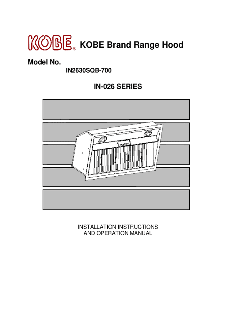 KOBE Brand Range Hood Model No. IN2630SQB700IN026 SERIESINSTALLATION INSTRUCTIONS AND OPERATION MANUAL[ENGLISH] READ AND SAVE THESE INSTRUCTIONS CONTENTSIMPORTANT SAFETY INSTRUCTIONS ........................................................................