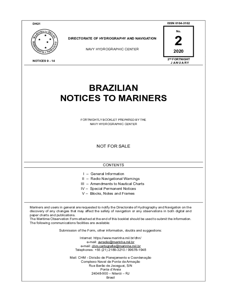 ISSN 01043102RINHNo. DIRECTORATE OF HYDROGRAPHY AND NAVIGATIONORAGAOHIDRGA DO BRSILMADH21E