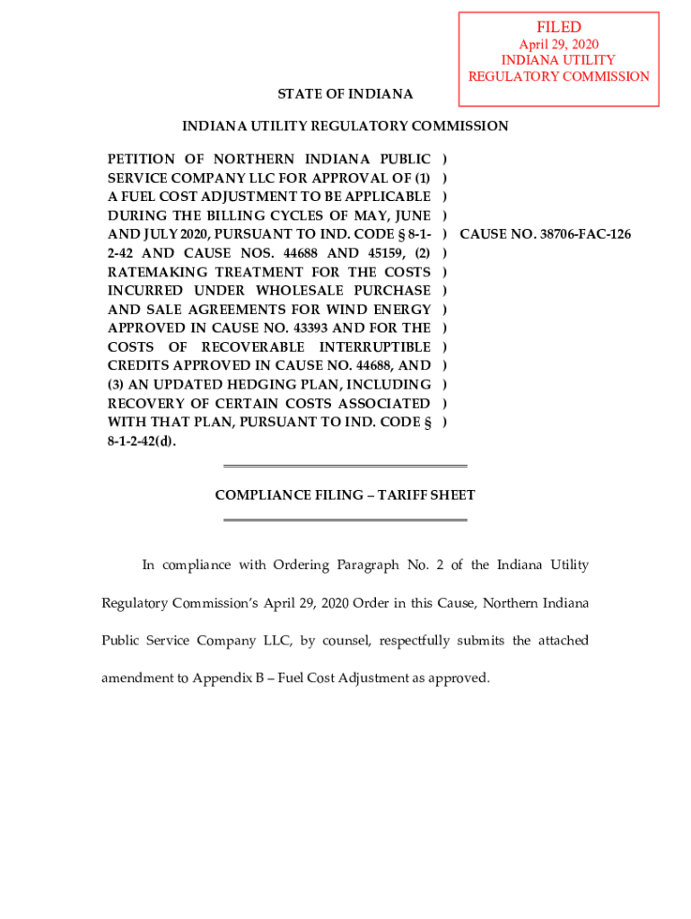 Get the free 38706FAC126NIPSCOCompliance FilingTariff Sheet04292020
