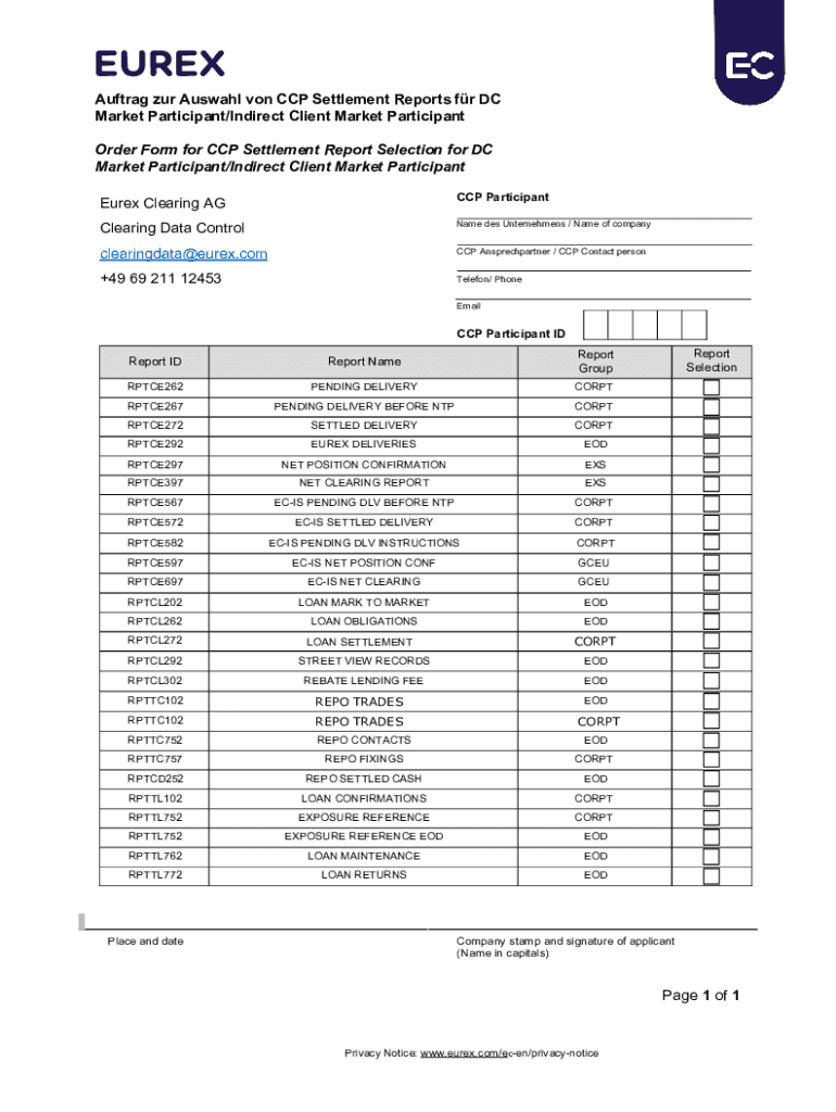 EUREXAuftrag our Usual on CCP Settlement Reports for DC