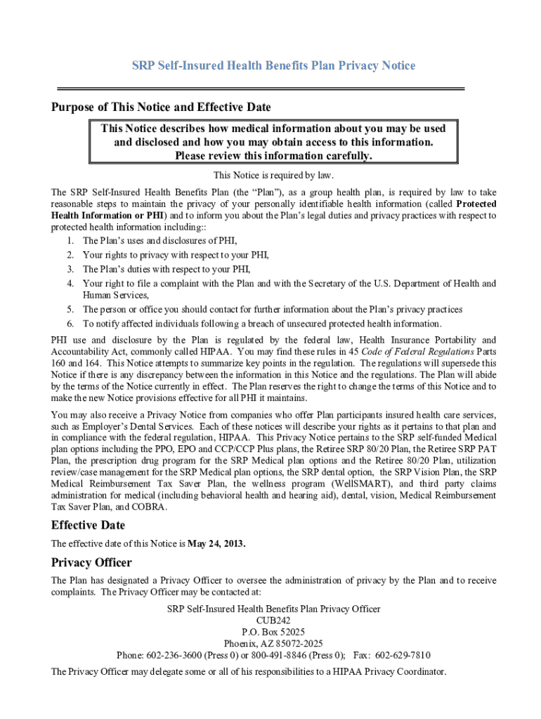 Get the free Self-Insured Health Benefits Plan Privacy Notice