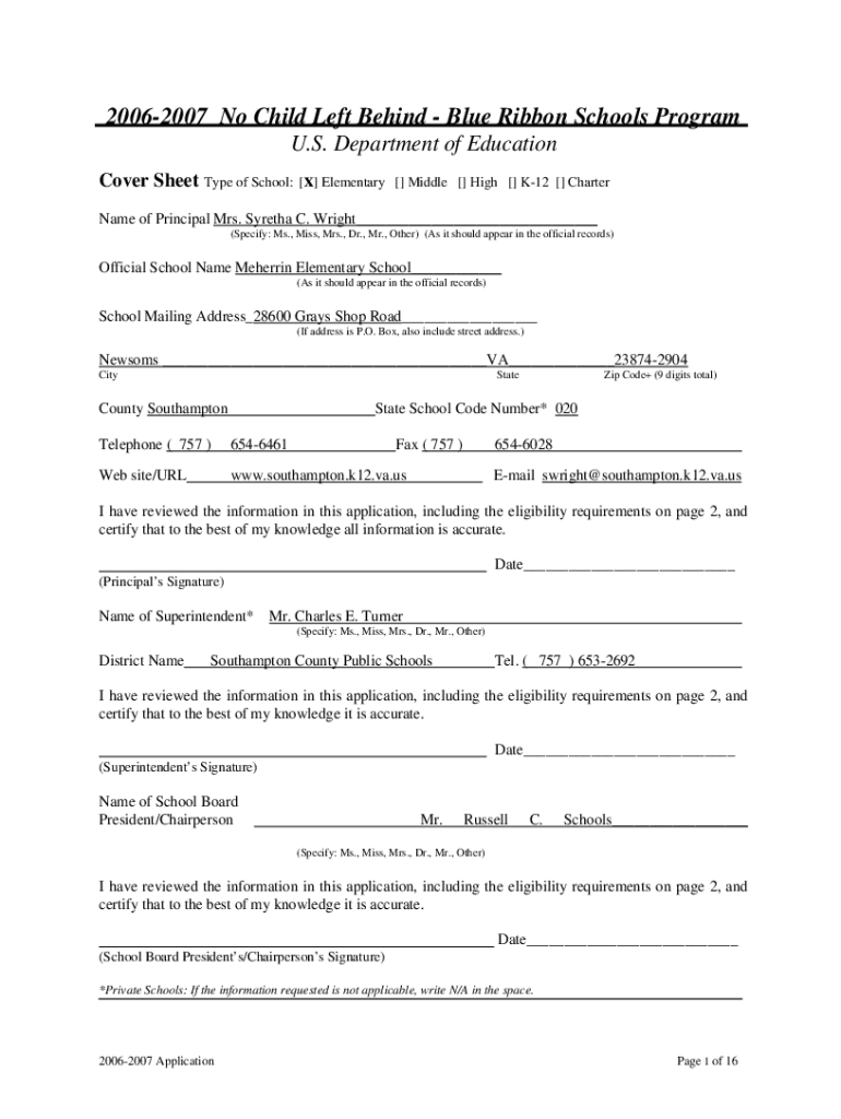 20062007 No Child Left Behind Blue Ribbon Schools Program