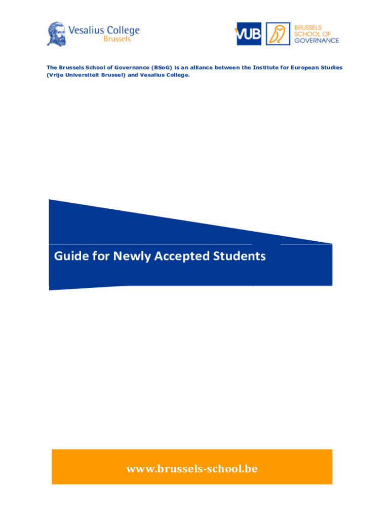 (Voice Universities Brussels) and Vesalius College. Guide for Newly Accepted Students.brusselsschool.beatable