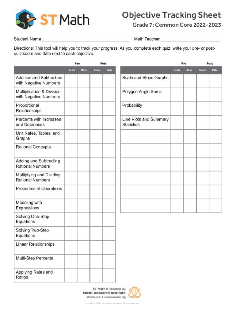 Grade 7: Common Core 20222023Student Name ___Math Teacher ___Directions: This tool will help you to track your progress. As you complete each quiz, write your PRE or postquiz