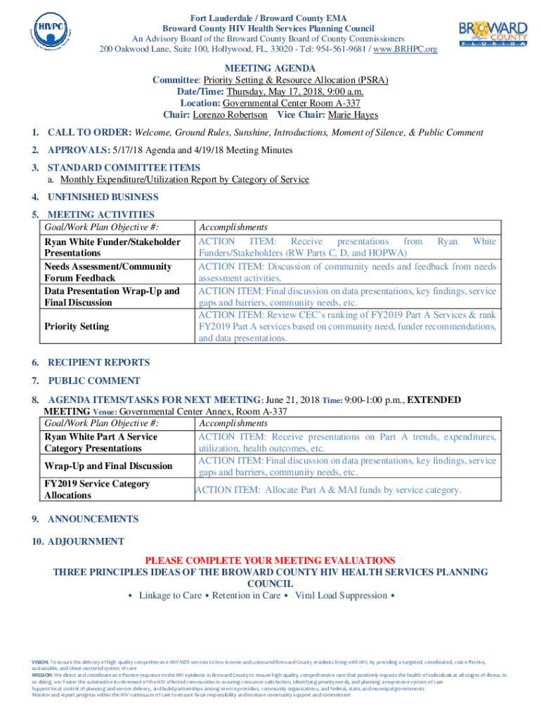 Fort Lauderdale / Broward County EMA Broward County HIV Health Services Planning Council An Advisory Board of the Broward County Board of County Commissioners 200 Oak wood Lane, Suite 100, Hollywood,
