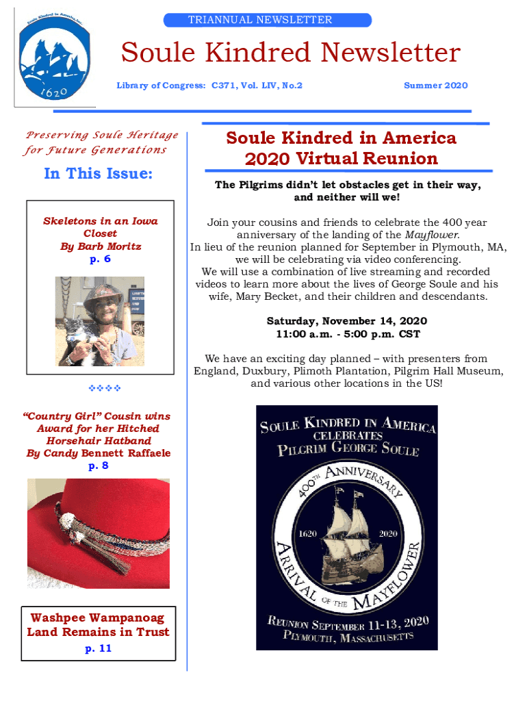 ... PDF 1.jpgTRIANNUAL NEWSLETTERSoule Kindred Newsletter Library of Congress: C371, Vol. LIV, No.2In This Issue: Skeletons in an Iowa Closet By Barb Moritz p. 6Summer 2020Soule Kindred in America