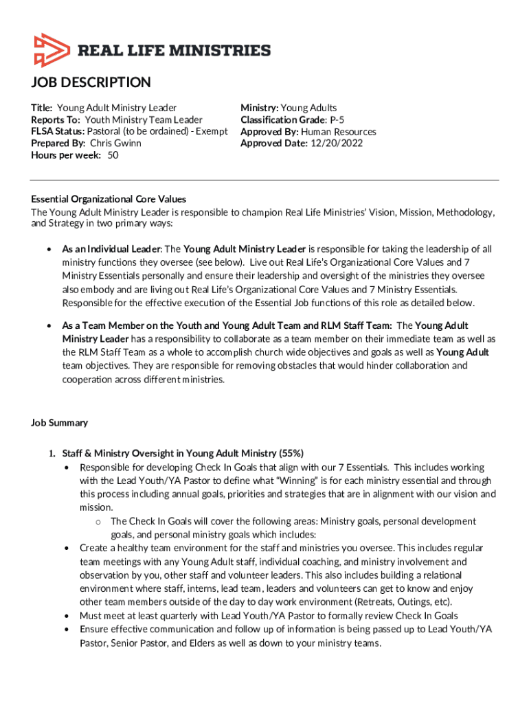 Get the free Young Adult Ministry Leader Job Description.docx