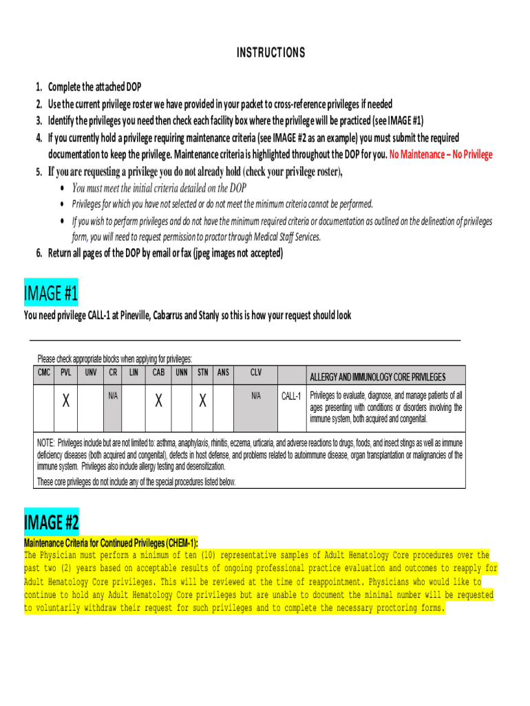 INSTRUCTIONS 1. 2. 3. 4. Complete the attached DOP Use the current privilege roster we have provided in your packet to cross-reference privileges if needed Identify the privileges you need then check