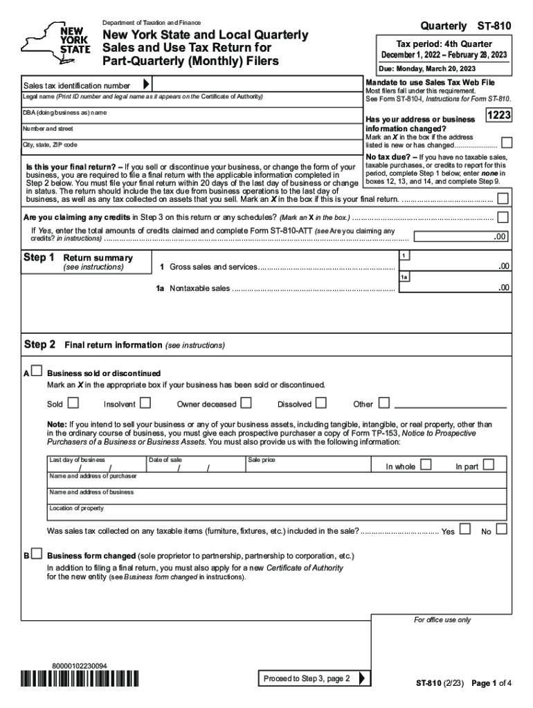 QuarterlyST810Department of Taxation and Finance York State and Local Quarterly
