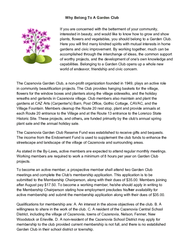 Why Belong To A Garden Club If you are concerned with the betterment of your community, interested in beauty, and would like to know how to grow and show plants, flowers and vegetables, you should