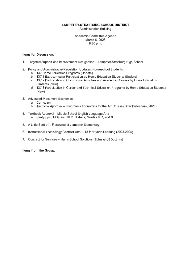 Academic Committee Agenda