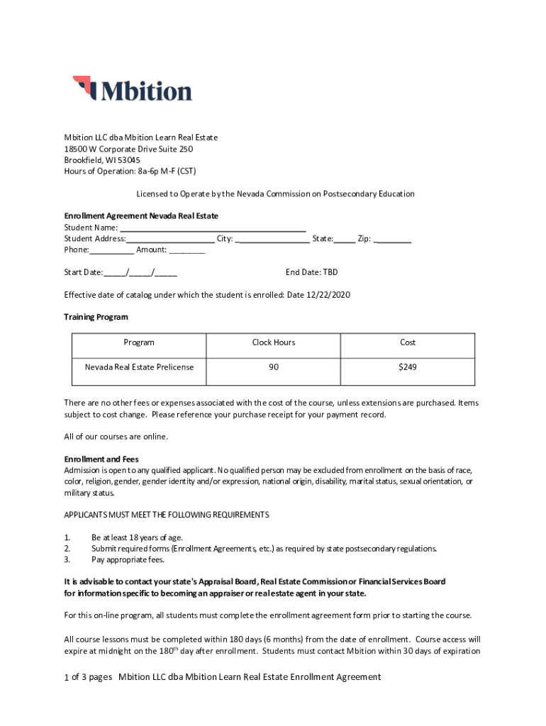 Ambition LLC DBA Ambition Learn Real Estate 18500 W Corporate Drive Suite 250 Brookfield, WI 53045 Hours of Operation: 8a6p MF (CST) Licensed to Operate by the Nevada Commission on Postsecondary Education