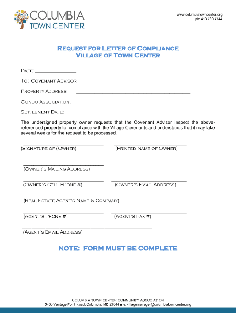 Property Address:___Condo Association:___Settlement Date:___The undersigned