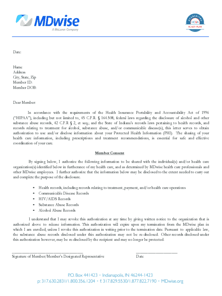 Date:Name Address City, State, Zip Member ID: Member DOB:Dear Member: In accordance with the requirements of the Health Insurance Portability and Accountability Act of 1996 (HIPAA), including but