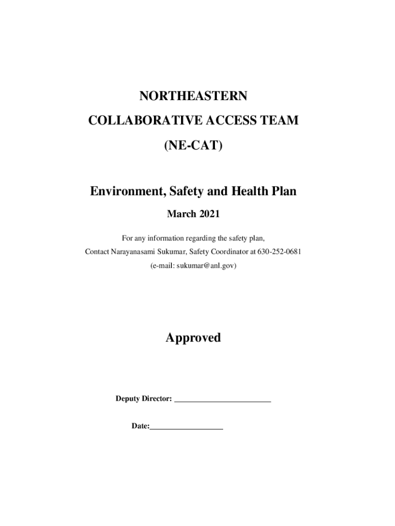 NORTHEASTERN COLLABORATIVE ACCESS TEAM (NEAT)Environment, Safety and Health Plan March 2021 For any information regarding the safety plan, Contact Narayanasami Kumar, Safety Coordinator at 6302520681