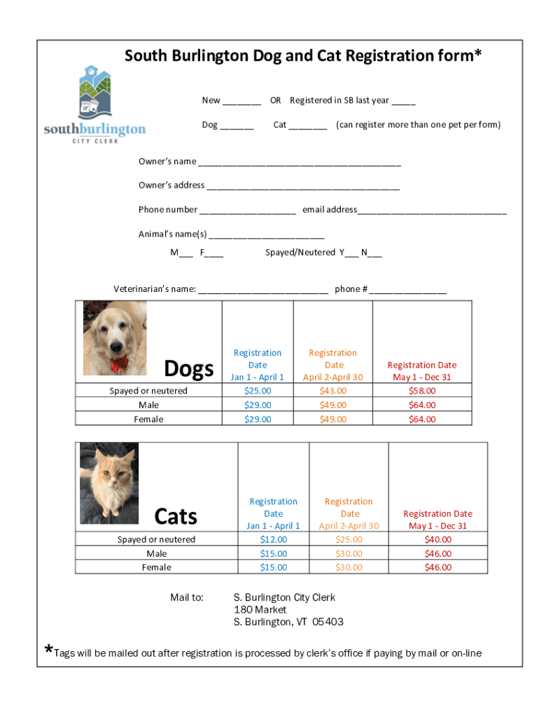 Dog licenses in the city of Burlington are required by law for all dogs over the age of 6 months.