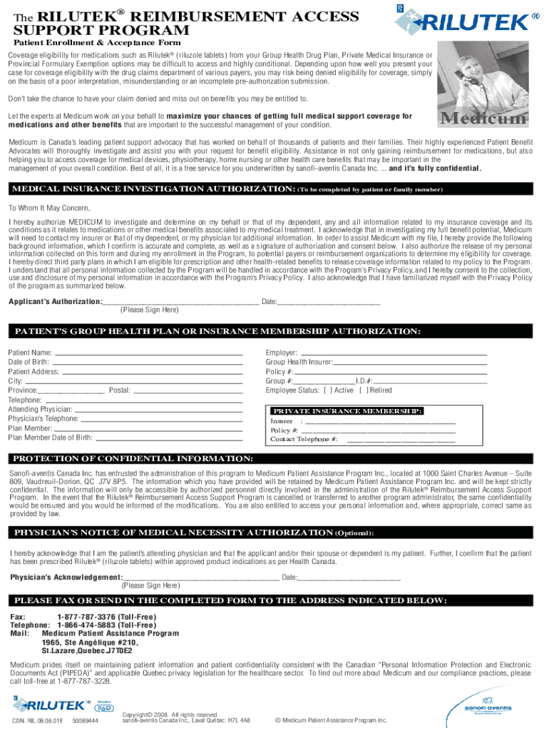 Patient Enrollment & Acceptance FormCoverage eligibility for medications such as Dilute (rissole tablets) from your Group Health Drug Plan, Private