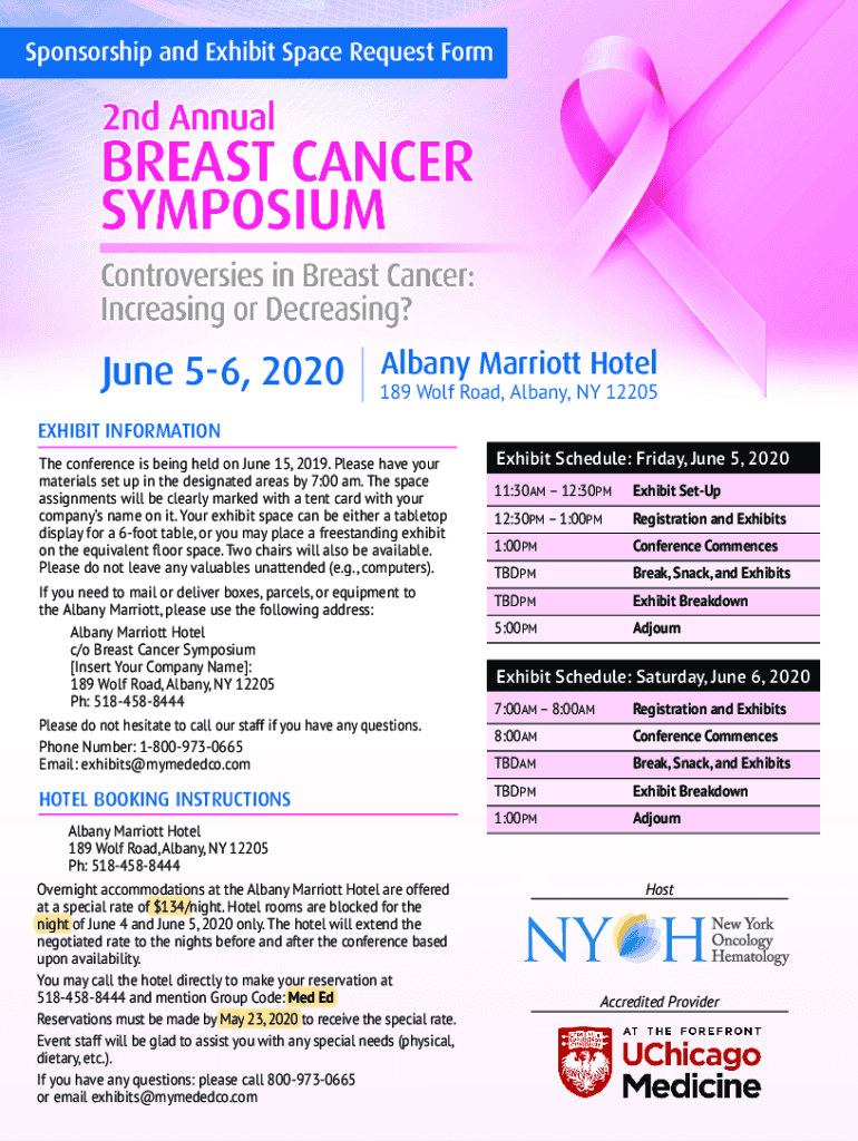 Sponsorship and Exhibit Space Request Form June 56, 2020Albany Marriott Hotel 189 Wolf Road, Albany, NY 12205EXHIBIT INFORMATION The conference is being held on June 15, 2019. Please have your materials