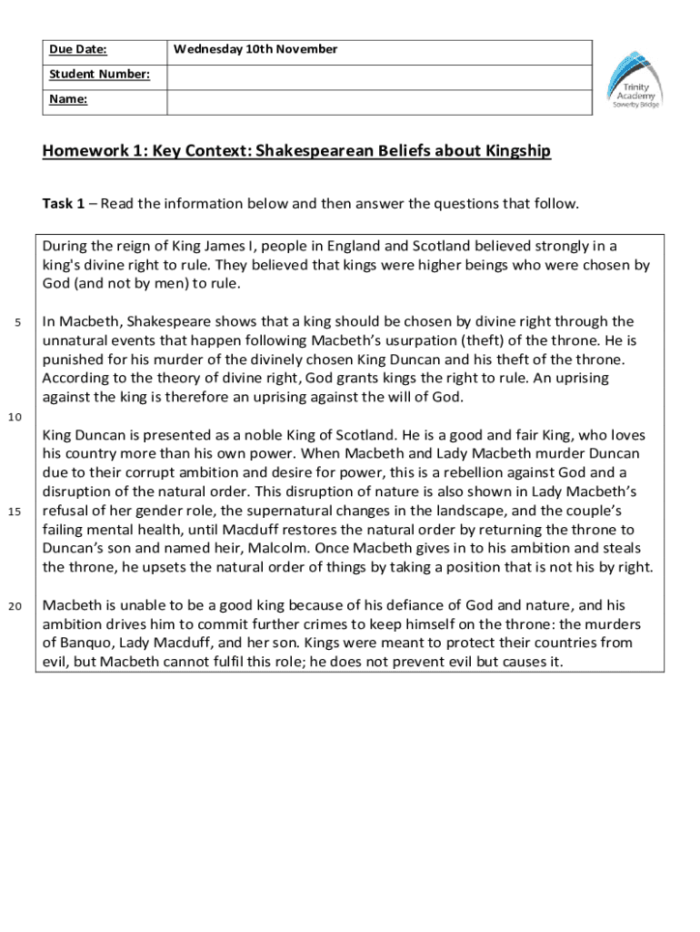 Get the free Homework 1: Key Context: Shakespearean Beliefs about Kingship