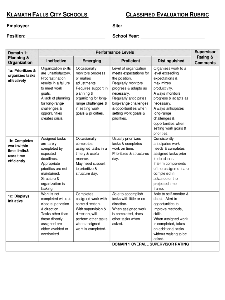 CLASSIFIED EVALUATION STANDARDS The standards identify the aspects of an employees responsibilities broken out into four (4) domains: Planning & Organization, Communication & Interpersonal Skills,